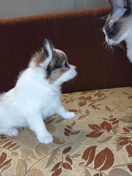 Кобель бело-соболиный Милон зэ брайт сан / Milon the bright sun Клеймо есть, сделана первая вакцинация. Зубы норма, семенники норма. Пригоден для выставочной и племенной карьеры. Щенок очень ласковый, энергичный, как и все папийоны, любознательный, любит ручки и общение с человеком. Родители имеют интересную и титулованную со всех сторон родословную. Общие линии мамы и папы известных питомников Швеции, Германии, Японии, Америки, Люксембурга.