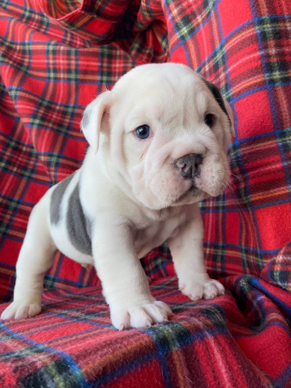 Щенок цветного английского бульдога, мальчик. Окрас бело-голубой. Документы АВKC. Привит по возрасту. Озорной, чудесный мальчик ищет своих маму и папу.